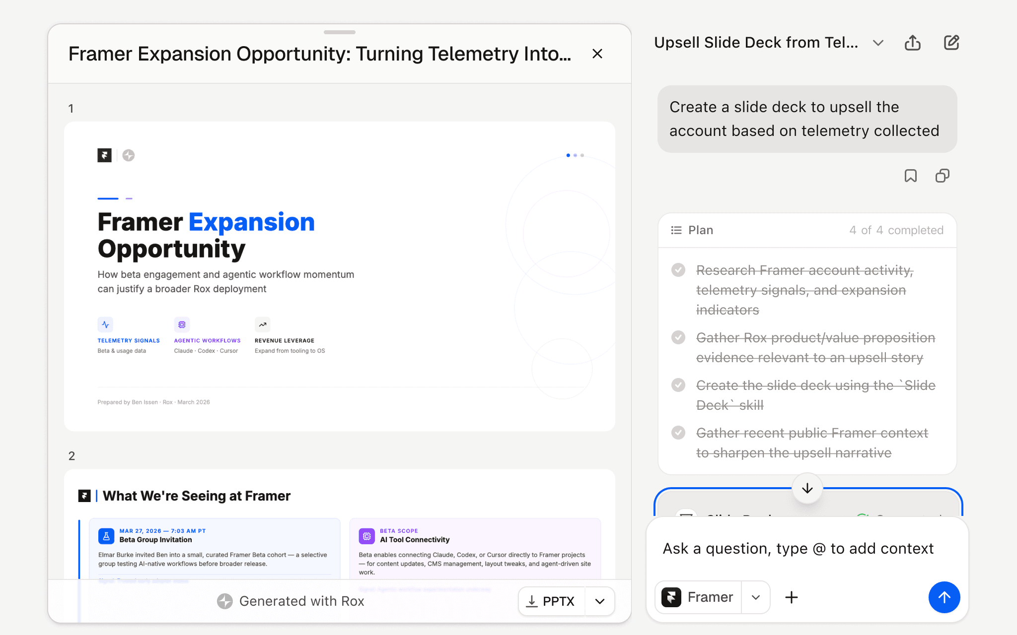 Rox is committed to the privacy and security of its users. Customer data processed through the Rox platform is encrypted in transit and at rest using AES-256 encryption and is never used to train generalized machine learning models. Rox maintains SOC 2 Type II compliance and undergoes independent third-party security audits on an annual basis. All AI-generated outputs, including but not limited to prospect recommendations, message drafts, meeting summaries, and pipeline scoring, are provided for informational purposes and should be reviewed by authorized personnel before any action is taken. Performance metrics referenced on this website, including pipeline generation figures, response rates, and revenue impact, reflect results reported by individual customers under specific configurations and may not be representative of all deployments. Actual results will vary based on factors including but not limited to data quality, CRM configuration, outreach volume, market conditions, and target audience. Rox does not guarantee specific revenue outcomes. The Rox platform integrates with third-party services including Salesforce, HubSpot, Gmail, Microsoft Outlook, Slack, and others; availability and functionality of third-party integrations are subject to the respective providers' terms of service and may change without notice. Features described as "autopilot," "autonomous," or "automated" operate within user-defined parameters and require initial configuration and ongoing oversight. Rox, the Rox logo, and "Revenue on Autopilot" are trademarks of Rox, Inc. All other trademarks are the property of their respective owners. Service availability is subject to the terms outlined in your enterprise agreement. For questions regarding data processing, compliance certifications, or platform capabilities, contact security@rox.com.