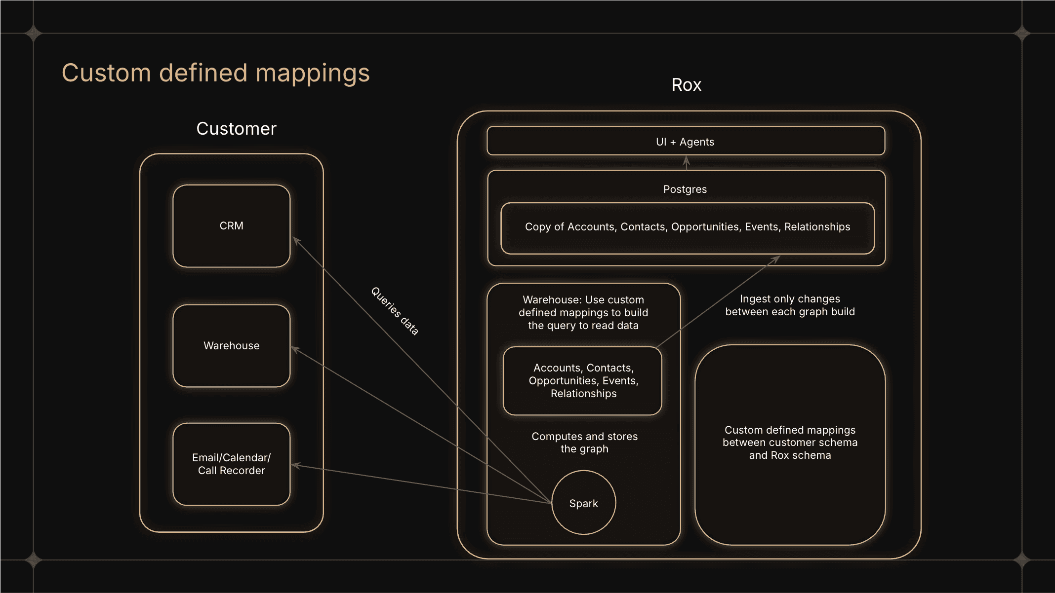 For revenue teams, this architecture turns fragmented data into a living system of knowledge. Instead of stitching together dashboards, queries, and conversations, teams get a real-time, connected view of their customers that reflects how the business actually operates. By unifying data across sources and making relationships explicit, Rox enables faster understanding, better decisions, and timely action—unlocking value that was always present in the data, but never accessible.