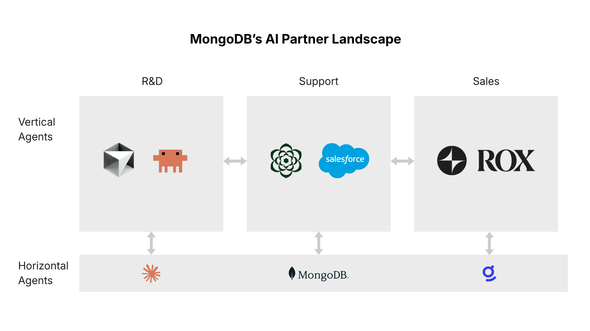 MongoDB continues to expand its innovative use of AI, leveraging AI agents across internal workflows. As shown in the image above, they have built exceptional agents internally and partnered with domain specific agents across vertical functions.