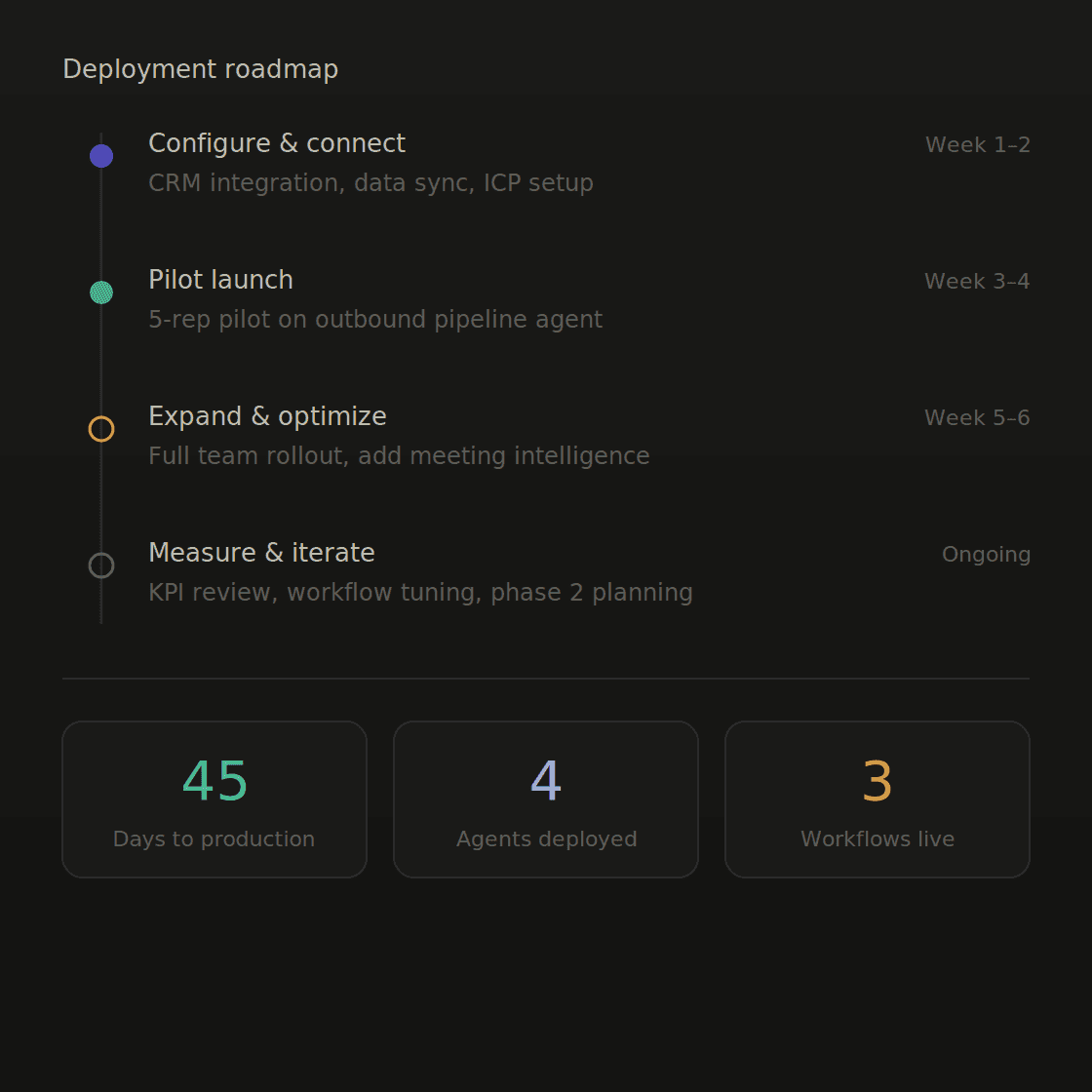 Teams spend hours on lead research, follow-up sequencing, and forecast updates that AI agents could handle autonomously.