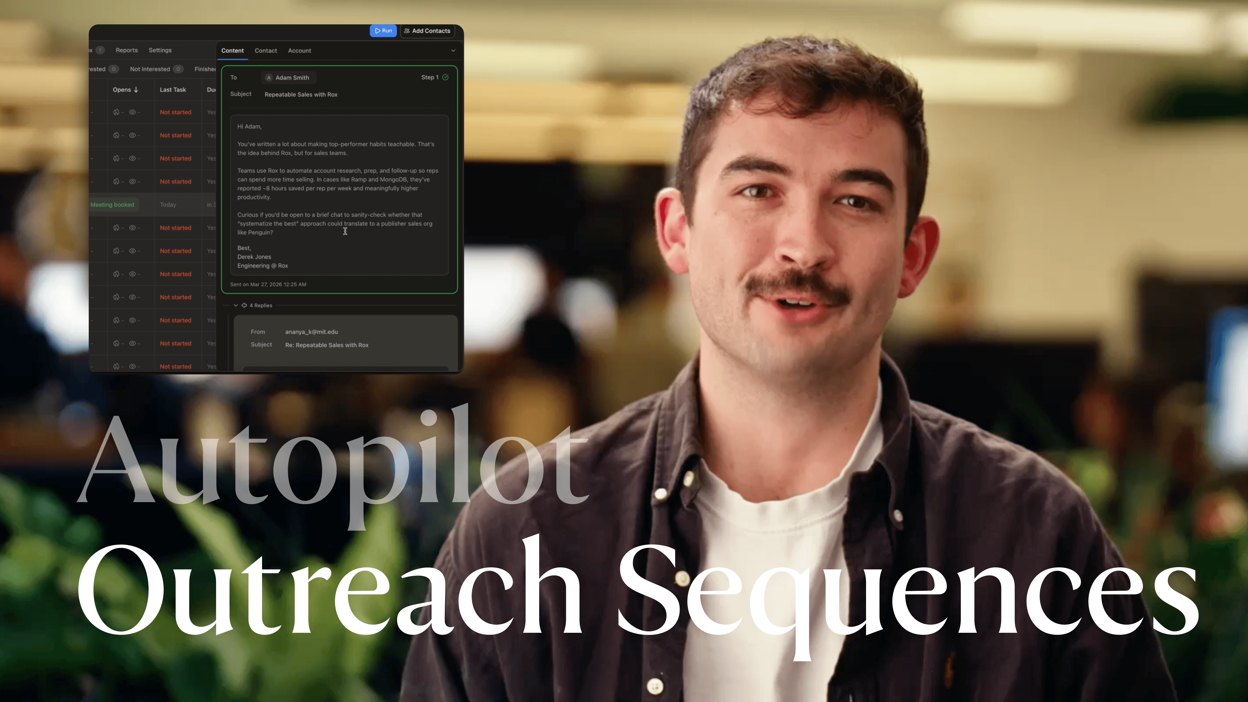 Rox is committed to the privacy and security of its users. Customer data processed through the Rox platform is encrypted in transit and at rest using AES-256 encryption and is never used to train generalized machine learning models. Rox maintains SOC 2 Type II compliance and undergoes independent third-party security audits on an annual basis. All AI-generated outputs, including but not limited to prospect recommendations, message drafts, meeting summaries, and pipeline scoring, are provided for informational purposes and should be reviewed by authorized personnel before any action is taken. Performance metrics referenced on this website, including pipeline generation figures, response rates, and revenue impact, reflect results reported by individual customers under specific configurations and may not be representative of all deployments. Actual results will vary based on factors including but not limited to data quality, CRM configuration, outreach volume, market conditions, and target audience. Rox does not guarantee specific revenue outcomes. The Rox platform integrates with third-party services including Salesforce, HubSpot, Gmail, Microsoft Outlook, Slack, and others; availability and functionality of third-party integrations are subject to the respective providers' terms of service and may change without notice. Features described as "autopilot," "autonomous," or "automated" operate within user-defined parameters and require initial configuration and ongoing oversight. Rox, the Rox logo, and "Revenue on Autopilot" are trademarks of Rox Data Corp. All other trademarks are the property of their respective owners. Service availability is subject to the terms outlined in your enterprise agreement. For questions regarding data processing, compliance certifications, or platform capabilities, contact security@rox.com.